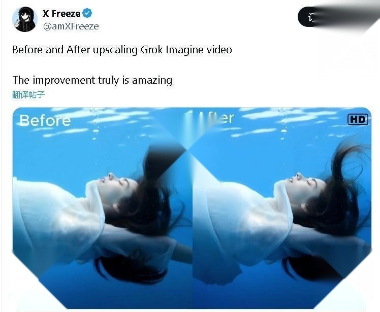 Grok Imagine 新推出了 Upscale 一键高清功能,马斯克都忍不住分享展示