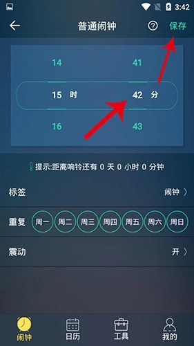 1.闹钟:支持按每天、每周、每月、每年、节日、生日等不同周期设置重复提醒,也可选择设置单次闹铃或隔天闹钟。