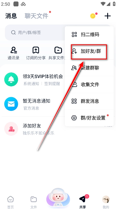 文件夹分享:直接长按文件夹,选择“分享”即可。