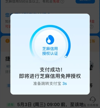 芝麻信用可减免租车押金与违章押金,一键下单,无需繁杂手续。