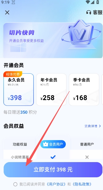 首先,在本网站安装切片快剪应用,点击同意用户协议和隐私政策后进入。