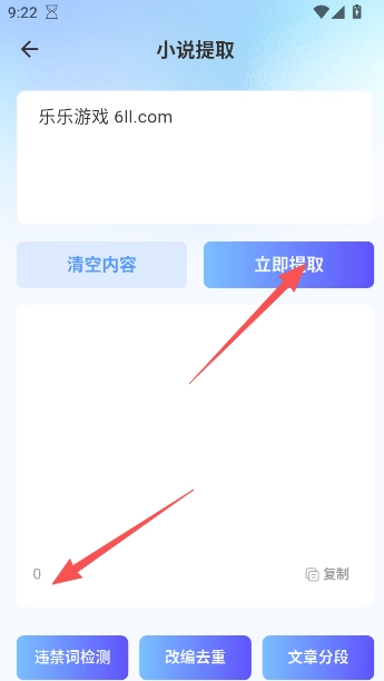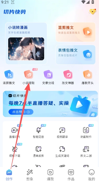 切片快剪的小说提取是一个独立的功能版块,点击首页的小说提取选项即可进行提取操作。