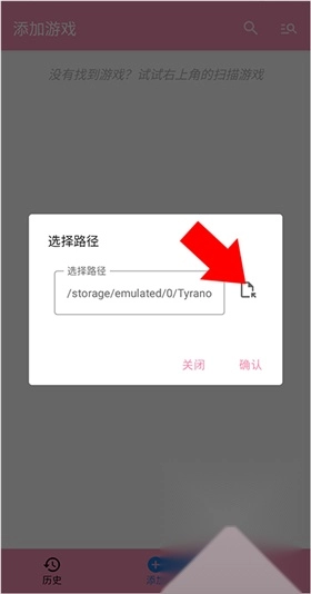 定位到游戏所在的目录,点击右下角的确认勾号。