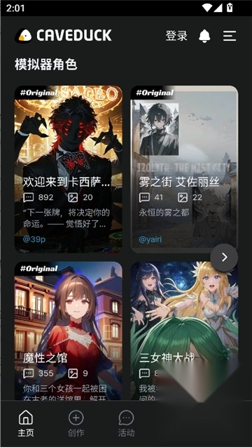 Caveduck有个很可爱的中文名字叫“鸭答鸭答”,打开软件界面就能看到一只萌萌的鸭子头像,核心功能就是给用户带来治愈感和陪伴感~为了让每位用户都能获得不错的使用体验,Caveduck鸭答鸭答这款聊天软件可是下了不少功夫,设计出了多种不同类型的角色卡牌。进入Caveduck选好喜欢的角色后,在设置里手动调整角色的人设变量、聊天开场白等内容,就能和TA开启轻松愉快的聊天啦!