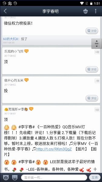 用户能够在贴吧里发布帖子,以此分享各类信息与个人观点。
