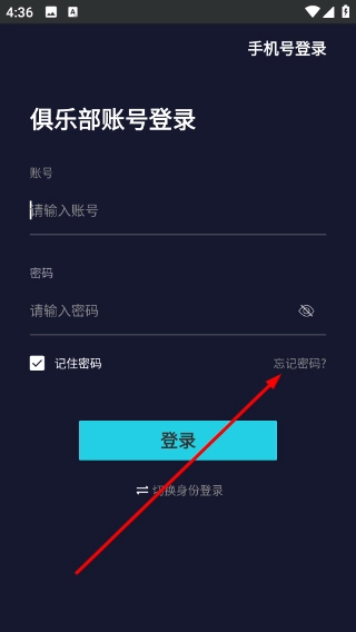 3、在俱乐部账号登录页面,若忘记密码,点击“忘记密码?”选项,即可进入重置密码界面,完成密码找回操作。