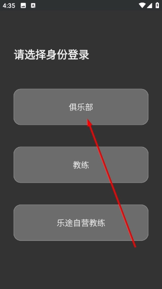 2、进入身份选择界面后,选择“俱乐部”身份,系统会跳转至俱乐部账号对应的登录页面,以便进行该身份的登录操作。
