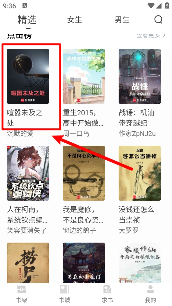 打开软件,选择并点击需要加入书架的小说。