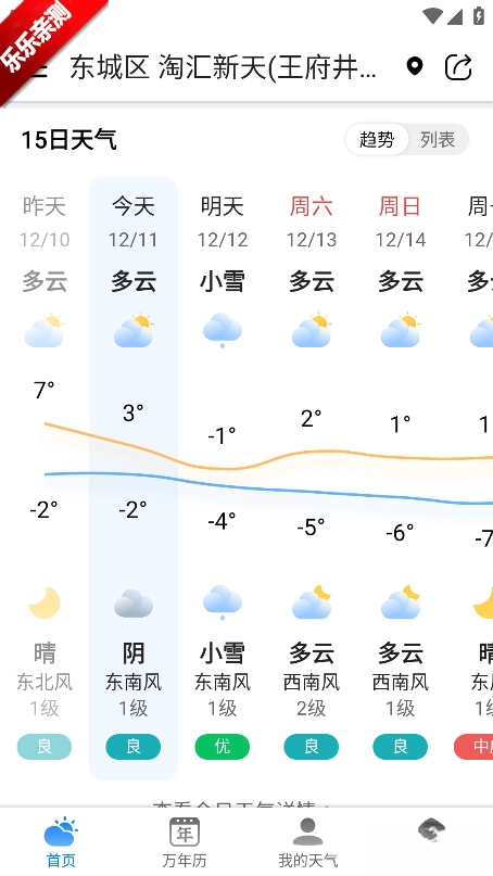 墨迹天气的特色在于综合气象服务与生活场景的广泛覆盖。它的技术体系整合了地面观测站点、卫星遥感技术、天气雷达系统以及AI数值预报模型,能够提供48小时内分钟级的降水预报、15天逐小时的天气详情,还有40天的中长期趋势预测,数据精准度达到公里级别。在生活服务领域,墨迹天气打造了钓鱼指数、滑雪预报、星空预报等二十多种垂直场景服务,同时还包含因天气变化可能引发的疼痛、过敏、流感等健康提示。比如,它的滑雪预报功能可以标注雪质等级,帮助用户判断当天是否适合新手或者进阶者进行滑雪活动;星空预报则结合天文台数据与本地气象模型,提供未来5天的观星指数预测。这些丰富的功能让它成为那些追求精细化生活决策用户的理想工具。