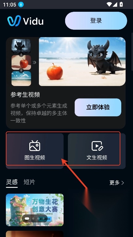 打开vidu ai手机版首页,这里具备文生视频、图生视频等功能。