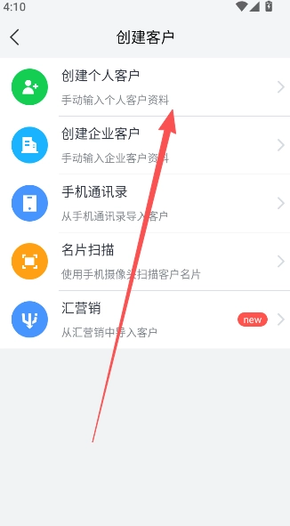 点击客户版块,选择右上方的人像添加选项。