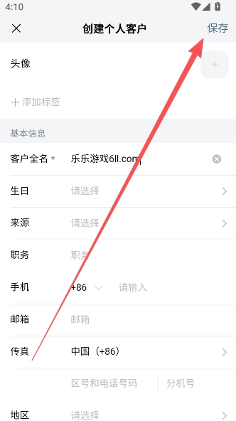 填写客户各项资料,点击保存,即可完成创建部分。