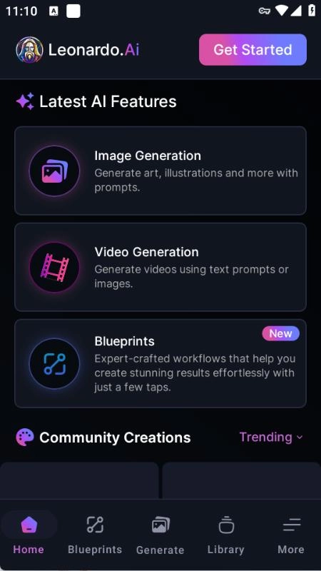 leonardoai手机版是一款AI图像生成应用,支持谷歌、苹果等账号登录,具备图片和视频生成功能,只需输入简单提示词就能快速生成所需内容,还提供蓝图工具、Phoenix等基础模型以及上千款微调模型。从事自媒体行业的用户可借助该应用进行文本生成、图生图等操作,免费版基本能满足日常基础创作需求,若有更高要求可自行订阅付费版本。