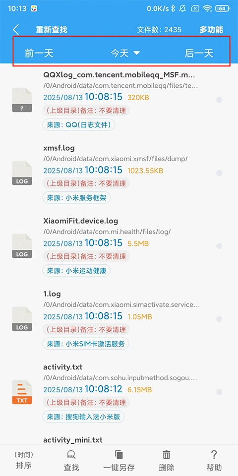 手机每天都会产生许多文件,通过本功能可以直观的查看到每天产生的文件是哪些。