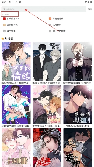 进入腐门圈后,你可以点击【搜索】按钮查找漫画,也可以浏览【热门漫画】板块查看推荐内容。