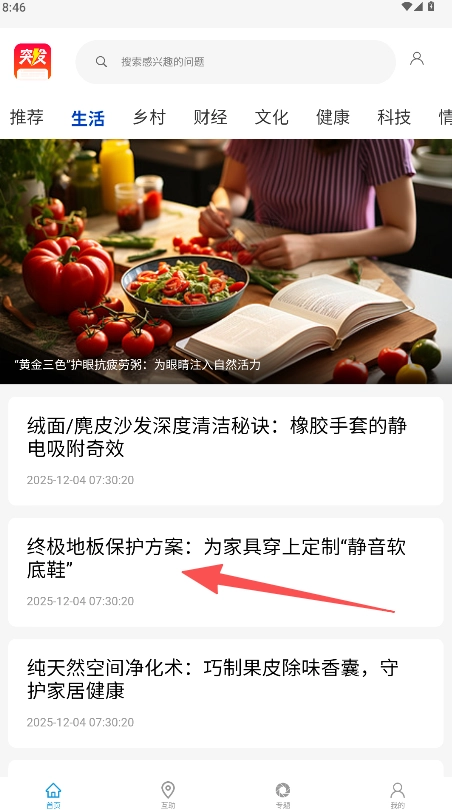 1、在首页顶部的分类栏里找到“生活”频道并点击,即可进入对应的资讯流页面。