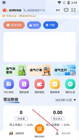 1、在运帮找货首页,点击底部【我的运帮】选项。