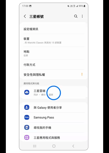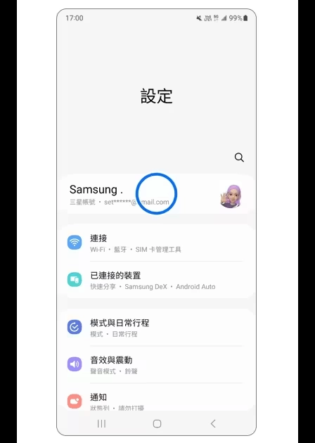 1、打开设备的「设置」,点击顶部的「三星账户」。