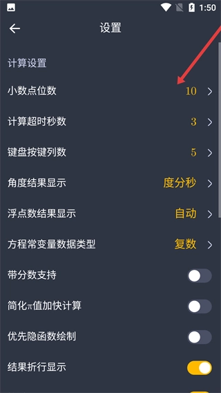 找到【设置】选项并点击,进入计算器的设置页面。