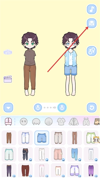 完成角色装扮后,点击右上角的保存类图标,即可将当前的角色外观配置保存下来,方便后续使用。