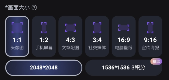 3、接下来是选择画面大小,有多种比例选择,适配各种平台和设备。