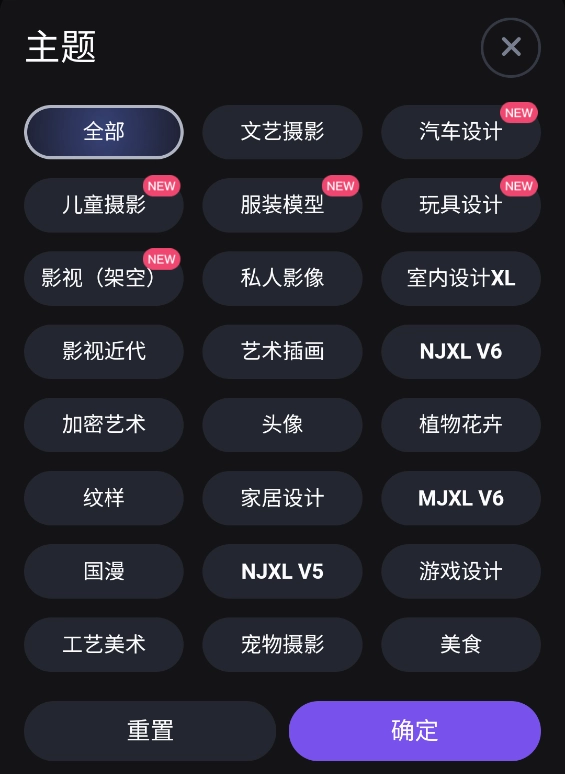 输入框左下角点击选择【主题】,只能选择一个,选择好点击游右下角的确定就可以了。