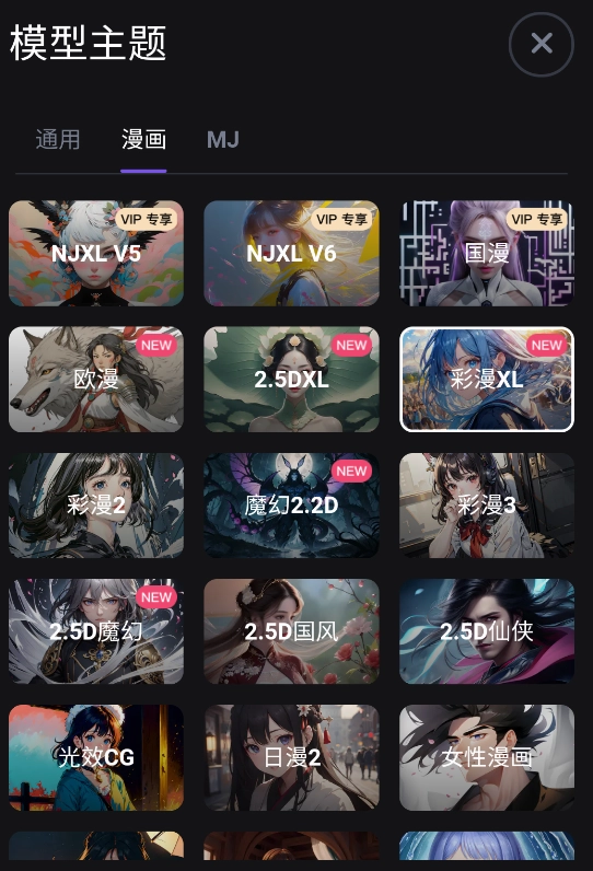 AI绘画模型全面:无界AI不断在学习市场上的模型与自训练大量特色的AI模型,各类二次元风格,MJ模型风格,历史著名画家,现代数字艺术,各种小众画风,都能在无界AI找到。