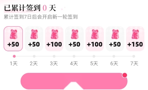 在怦怦连续签到满7天,每日都能领取软糖奖励,完成7天签到后将开启新一轮签到活动