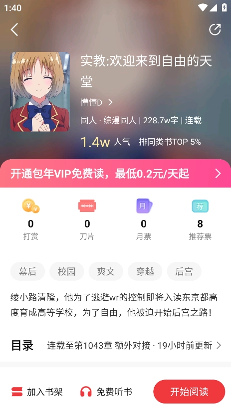 火文小说是由杭州热读文化科技有限公司开发的阅读平台,专注于为用户提供海量优质小说资源。该平台以“免费阅读”为核心特色,收录了超10万本正版小说,题材丰富多样,涵盖玄幻、都市、言情、悬疑、历史、武侠等多个类别,能够满足不同读者的多元化阅读需求。无论你是资深书虫还是刚接触阅读的新手,都能在这里找到自己喜欢的作品。平台会根据用户的阅读历史和偏好,智能推荐相似题材的小说,助力用户发现更多潜在的阅读喜好;同时支持自定义阅读偏好设置,用户可以手动勾选感兴趣的分类,进一步提升推荐的精准度。在阅读体验方面,平台提供翻页、滚动、夜间模式、护眼模式等多种阅读模式,适配不同场景下的阅读需求;还支持自定义字体、背景颜色、字号大小等功能,帮助用户打造专属的阅读环境。此外,平台设有小说社区,用户可以在这里分享阅读心得、讨论小说情节,与其他书友进行交流互动。