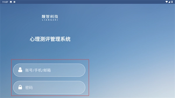 在【心理测评管理系统】的登录页面,输入【账号、手机号码或电子邮箱】以及【密码】,通过账号验证后即可进入系统。