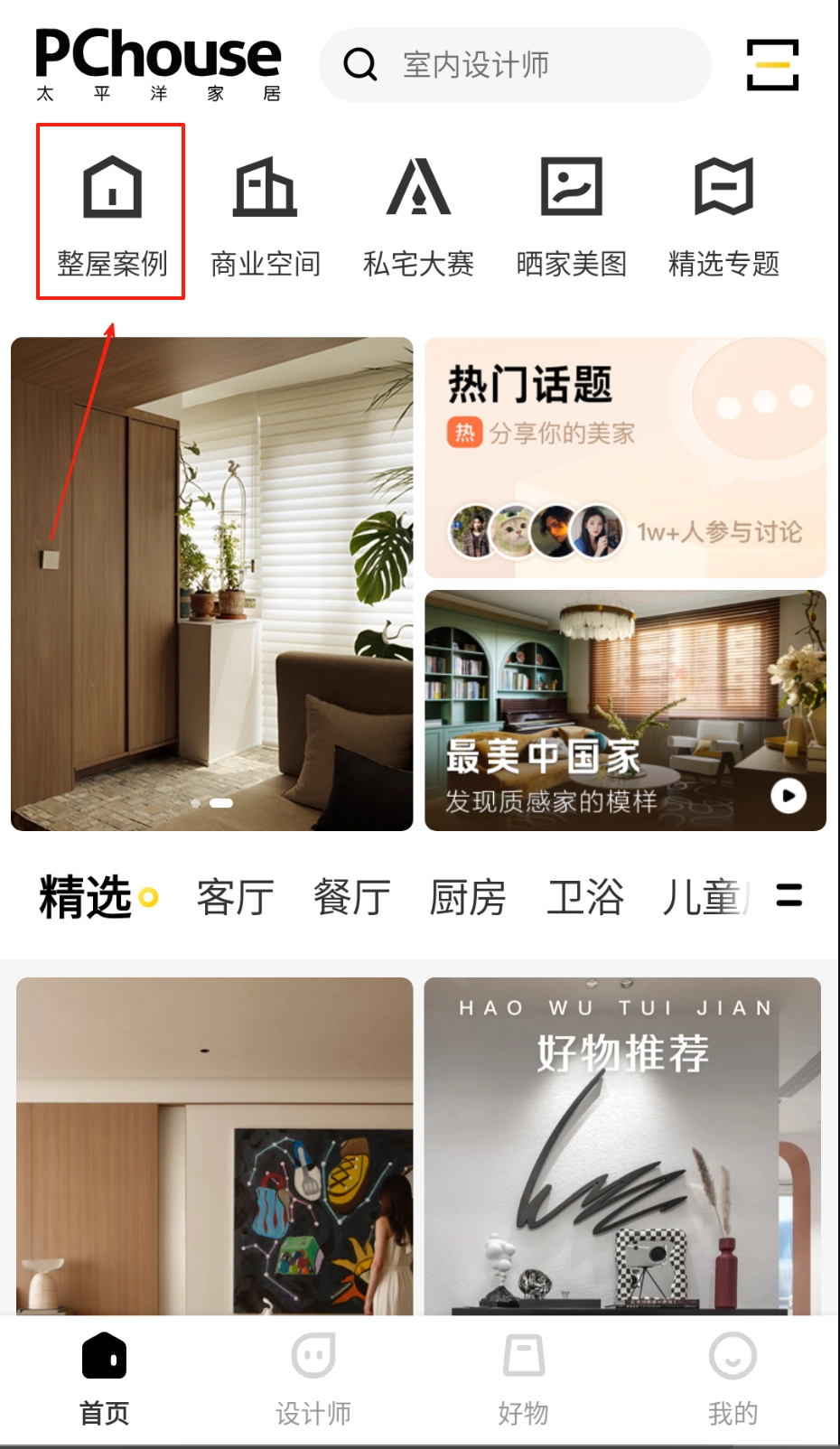您可以点击首页的“整屋案例”板块,在这里能够浏览来自国内外的实景样板间,还可以通过筛选户型面积,找到适合您的方案。