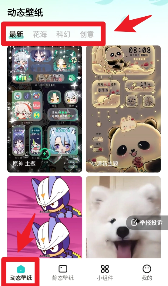 2、在首页找到动态壁纸板块,点击进入后,能从最新、花海、科幻、创意等不同分类里挑选心仪的动态壁纸。