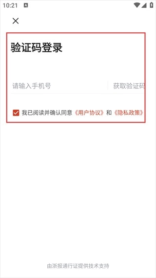 进入【验证码登录】界面,首先确认已同意相关协议,接着在【请输入手机号】处填写号码并点击【获取验证码】,完成登录信息的填写操作。
