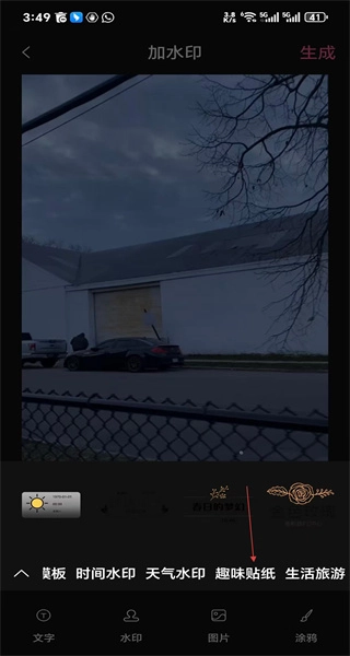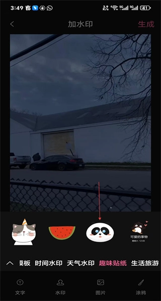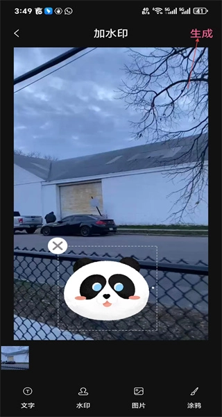 调整好贴纸的位置后,确认效果无误,点击生成按钮完成本次加水印的编辑操作。