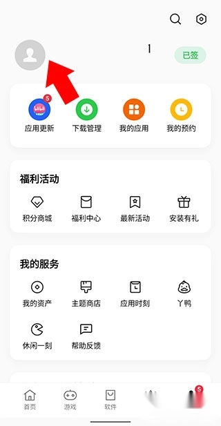 进入oppo软件商店最新版,点击右下角“我的”