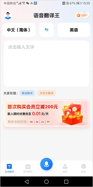 用户登录应用后即可进入输入文本进行中英翻译