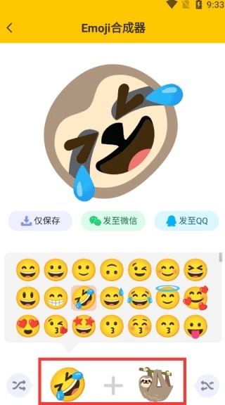 可以看到这里有特别多的表情符号,还能把两个表情符号合成新的——只要点击下方的两个表情符号,就能合成出不一样的表情啦!