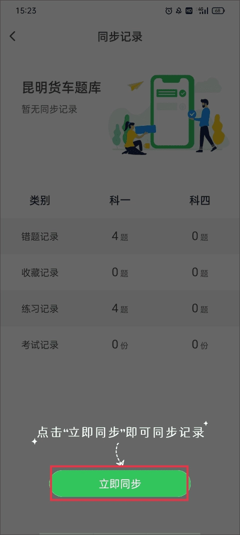 点击下方的立即同步按钮就可以同步你的做题记录了。