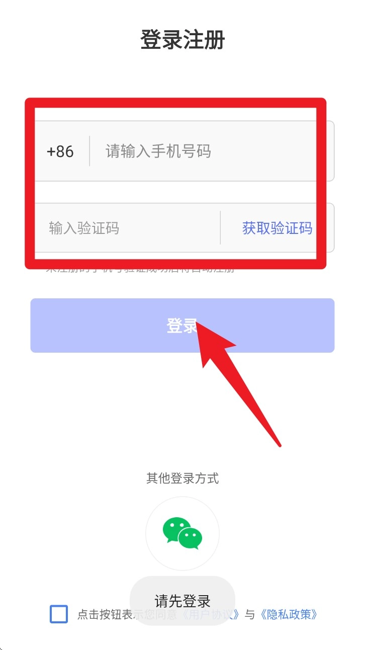 打开蘑菇易办公App,输入手机号获取验证码,点击登录就能进入首页,不需要复杂的注册步骤。