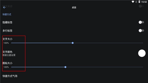 你还能够设置文字颜色、文字大小、图标大小等。