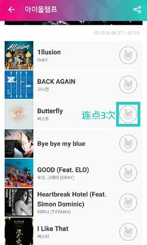 选择喜欢的歌曲,可以连续点击三次。