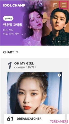 打开安卓版的idol champ应用,然后点击界面左上角的菜单栏。