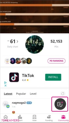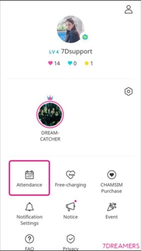 点击捕梦者主打歌旁的心形图标。每个账户(每台设备)每日最多可投票300次,且1票对应3个chamsims。