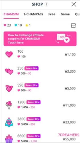 登录应用程序后,你可以收集chamsims(心形)和星星。