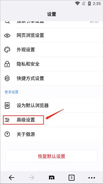 在设置页面选择“高级设置”。