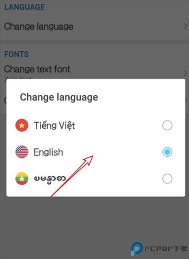点击【Change Language】,选择【Language and Font】,接着选择【english】就可以了。