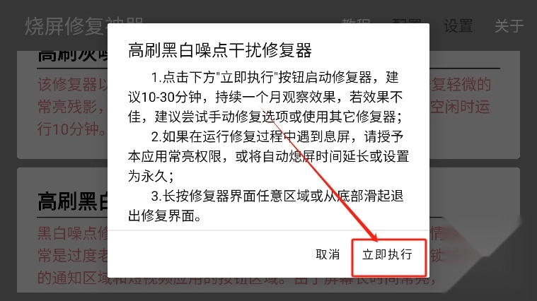 修复烧伤:可以尝试通过滚动黑白条纹或其他颜色的噪点图案,来恢复屏幕原本的显示状态。