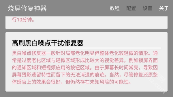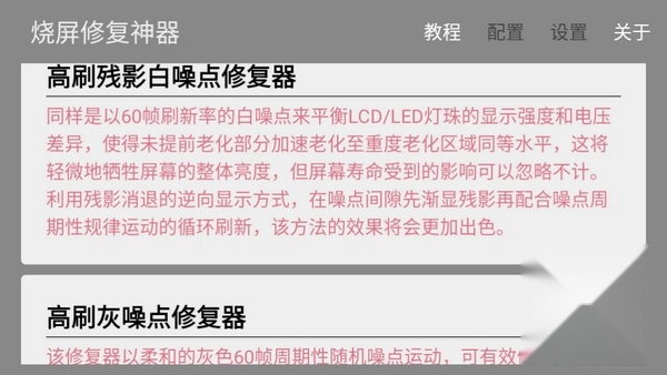 应用程序新增了修复屏幕烧伤的功能,比如通过滚动黑白条纹或其他颜色的噪点图案,来尝试让屏幕恢复到原本的状态。