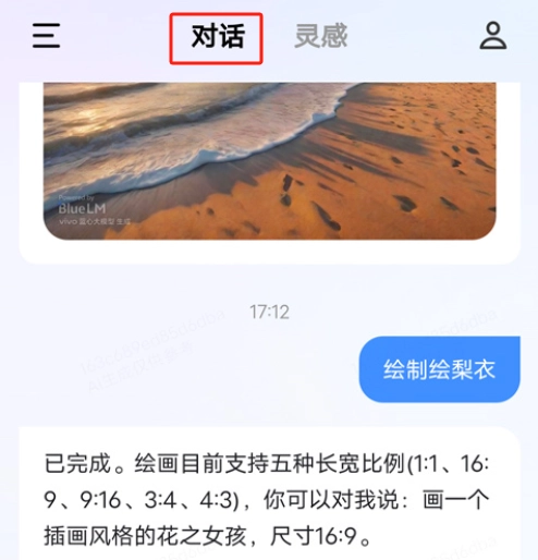 vivo千询设有【AI对话】与【AI灵感】两大版块。