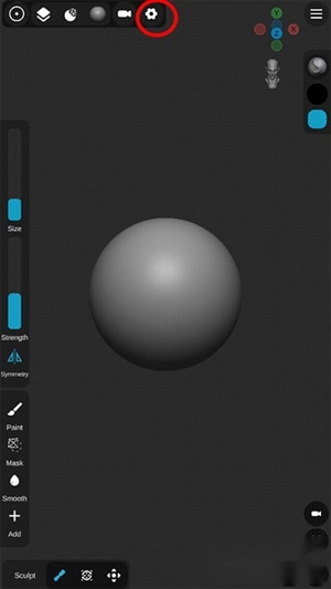 首先启动Sculpt+软件的最新版本,接着点击界面上方的齿轮形状设置图标。